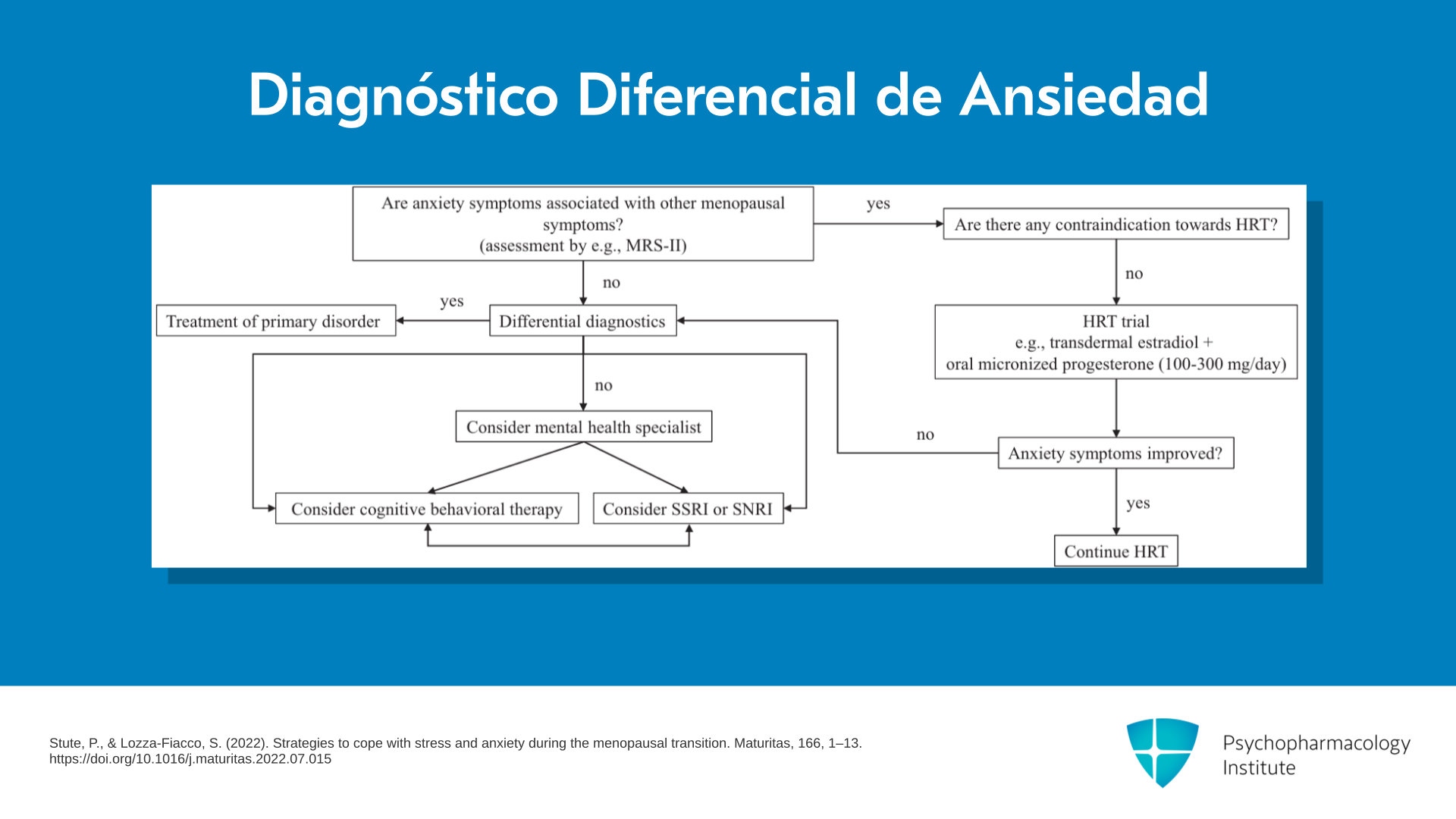 Volvamos al principio. Nuevamente, ¿están los síntomas de ansiedad asociados con otros síntomas menopáusicos? Si no lo están, entonces es realmente importante evaluar el diagnóstico diferencial.