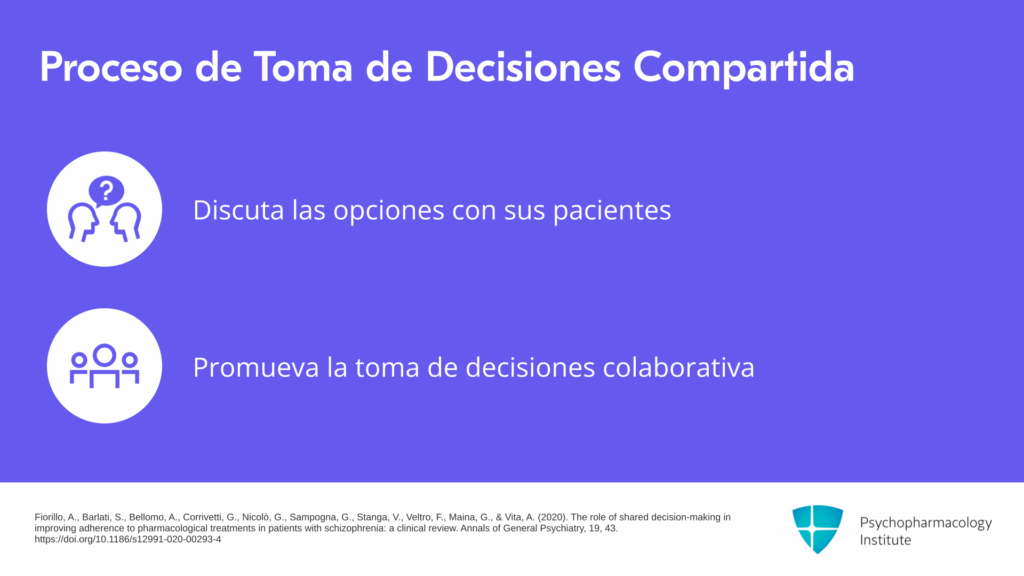 Un adagio de mi formación clínica es que no se diagnostica lo que no se pregunta. Por analogía, no prescribirán antipsicóticos inyectables de acción prolongada si no hablan con sus pacientes sobre ellos. Por eso, defiendo los principios de toma de decisiones compartida y colaborativa con nuestros pacientes.