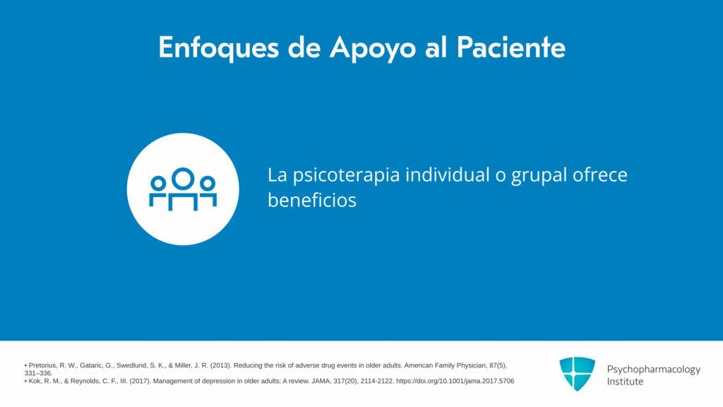 También puede ser útil proporcionar psicoeducación sobre habilidades de afrontamiento y estrategias para manejar los síntomas de manera conductual. Aquí es donde las derivaciones a psicoterapia individual o grupal pueden ser muy útiles.