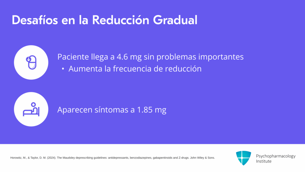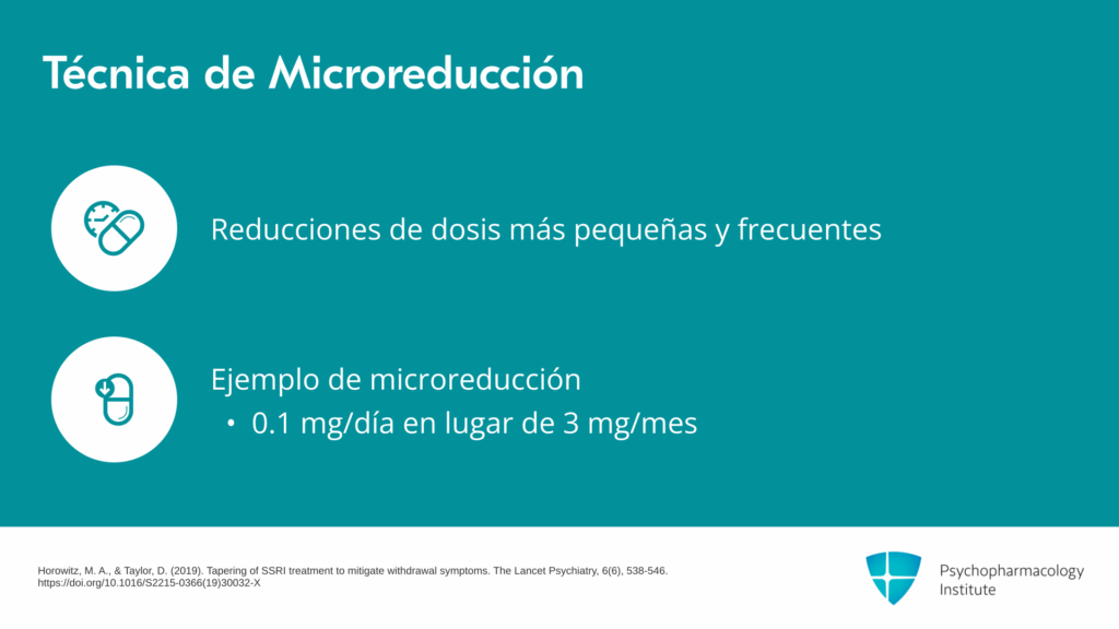 - La microreducción con disminuciones diarias pequeñas (0,1 mg/día) puede generar menos síntomas de retiro que las reducciones mensuales más amplias.