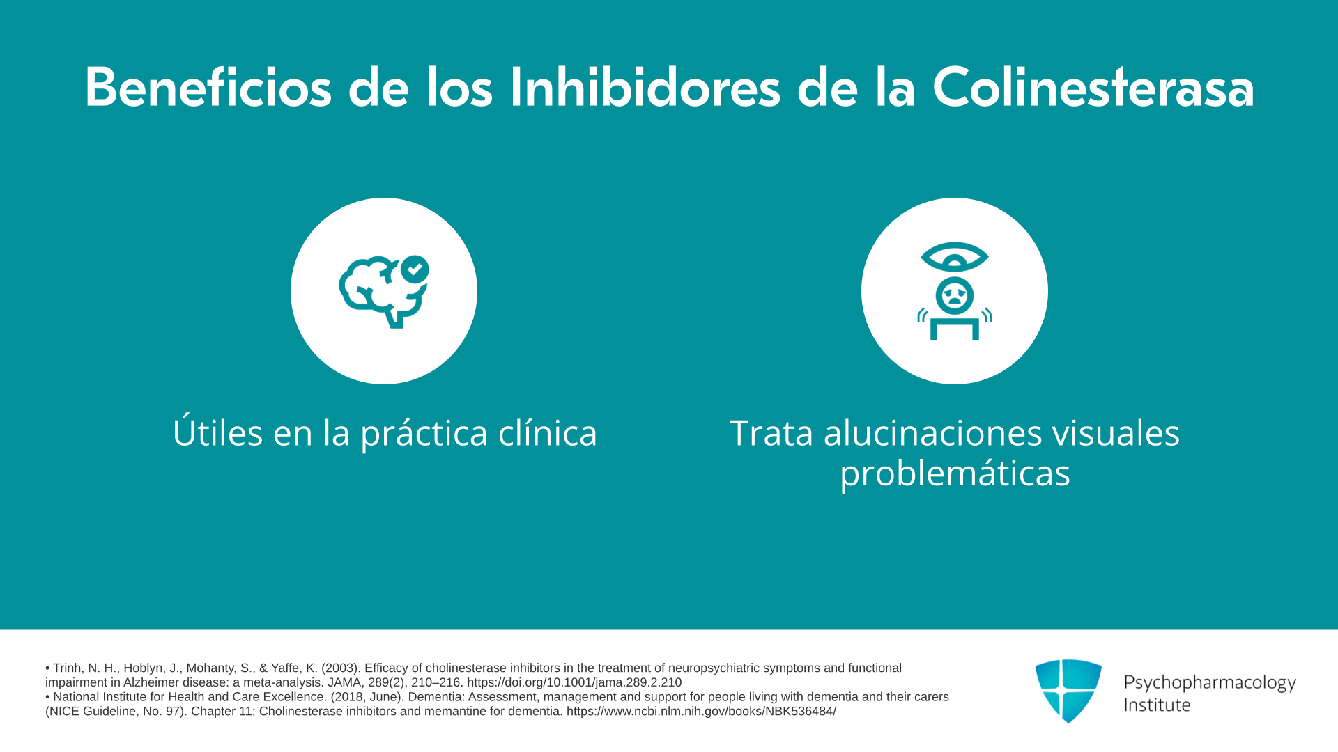 Todos podemos pensar en pacientes donde hemos usado estos medicamentos y han sido útiles. Una situación en la que estaría más inclinado a usar inhibidores de la colinesterasa sería en el contexto de demencia con cuerpos de Lewy o enfermedad de Parkinson, donde los pacientes pueden tener alucinaciones visuales problemáticas. Existe evidencia de que los inhibidores de la colinesterasa pueden ser útiles para tratar estas alucinaciones visuales.