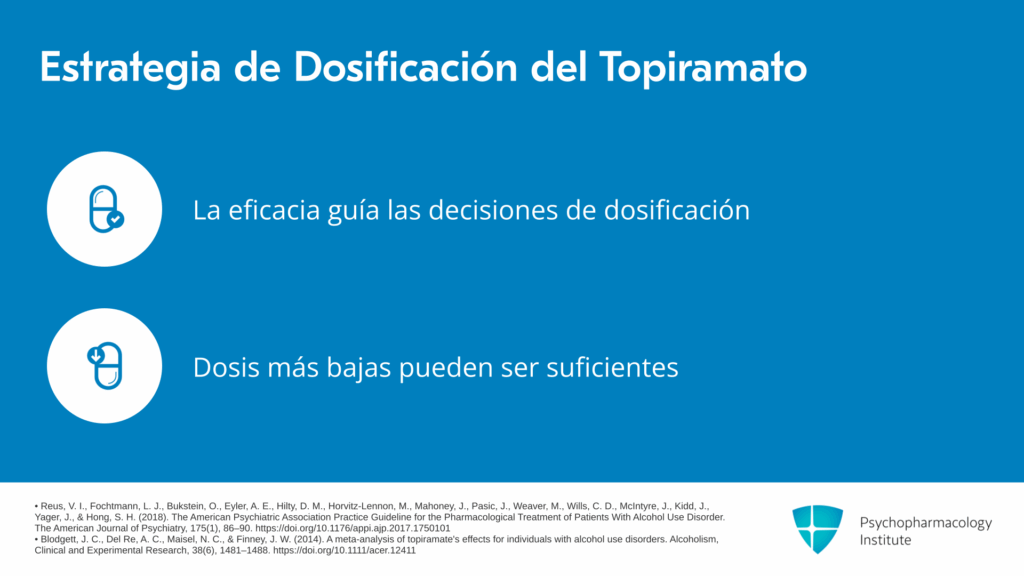- El topiramato requiere una titulación lenta comenzando con 25 mg dos veces al día, para evitar el enlentecimiento cognitivo y las altas tasas de abandono del tratamiento.