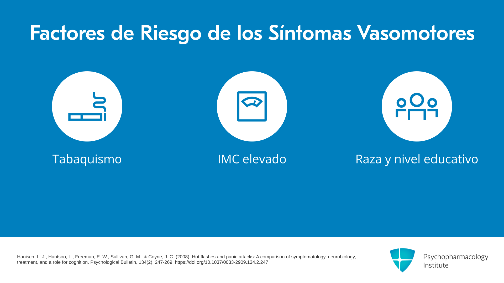 Puntos clave: Los factores de riesgo para los síntomas vasomotores incluyen el tabaquismo, un IMC más alto, un nivel educativo más bajo y estresores psicosociales como la ansiedad y la baja autoestima. Los precipitantes comunes de los síntomas vasomotores incluyen la cafeína, el alcohol y las emociones fuertes.