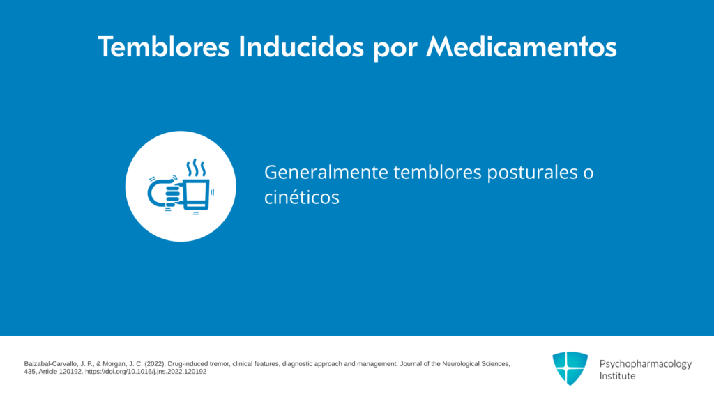 Los temblores inducidos por medicamentos son generalmente temblores posturales o cinéticos, y con menos frecuencia temblores en reposo.